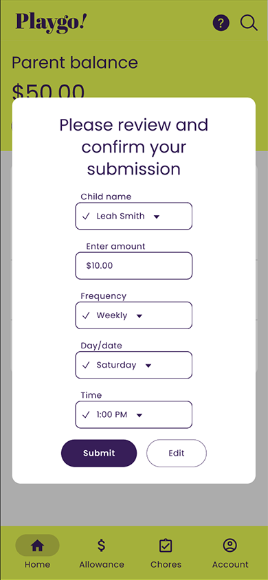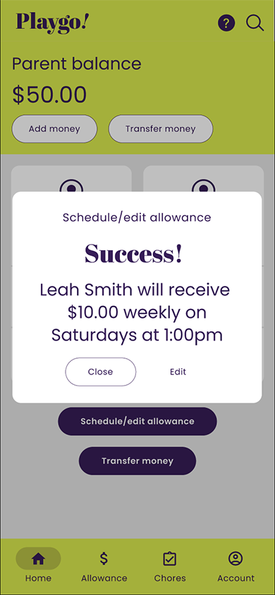 “As a parent, I want to schedule allowance payments, so I don’t forget to pay my child their allowance.”